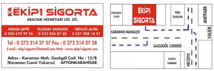 Afyonkarahisar da hizmet veren sigorta şirketimiz önceliği güven üzerine kurmayı amaçlamıştır. İhtiyaçlarınıza yönelik her türlü sigortacılık hizmetlerini yürütmekteyiz.Sigorta, Risk oluştuğunda satın alınamayacak tek ürün olduğunu bildiğimiz için sizlere en iyi şekilde hizmet etmeyi amaç edindik.Kasko,zorunlu trafik sigortası,dask,sağlık sigortası,yaşam sigortası,iş yeri sigortaclık işlemlerinde bizlerden teklif almadan karar vermeyiniz.